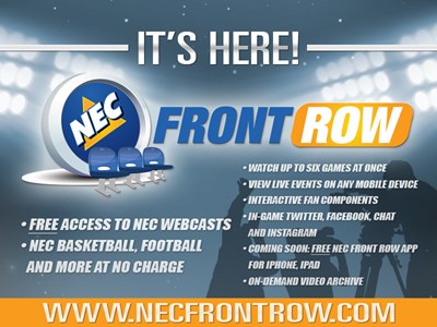 NEC Front Row,” said Noreen Morris, NEC Commissioner. “This state-of-the-art online digital network will provide NEC fans with the opportunity to follow their favorite teams, coaches and student-athletes through a high-end, interactive viewing experience. Our membership is truly excited about the launch of